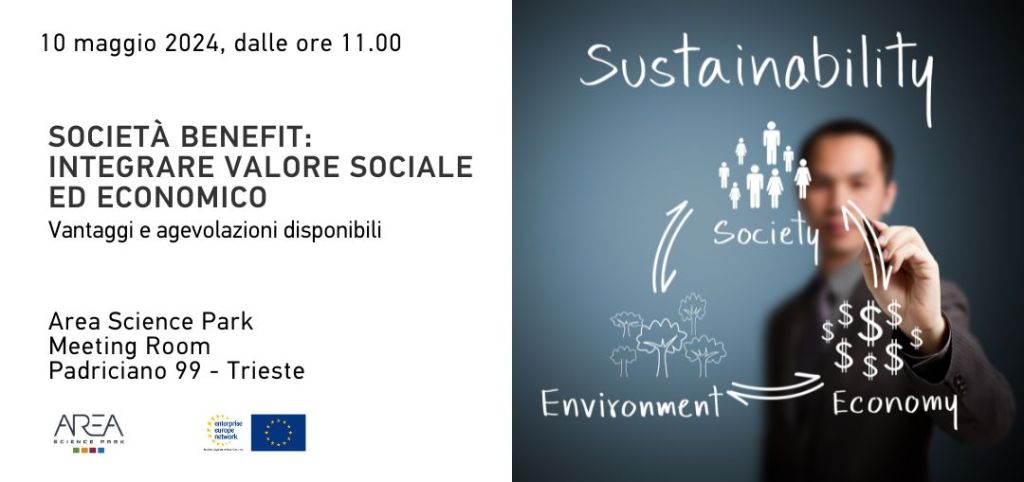 Il 10 maggio 2024, s-mood sustainable solutions interverrà all’evento “Società Benefit: integrare valore sociale ed economico. Vantaggi e agevolazioni disponibili” organizzato in Area Science Park, con un focus specifico sugli obiettivi di beneficio comune e la Relazione d’impatto al fine di contribuire a supportare le aziende nella scelta di questo modello innovativo di fare impresa.