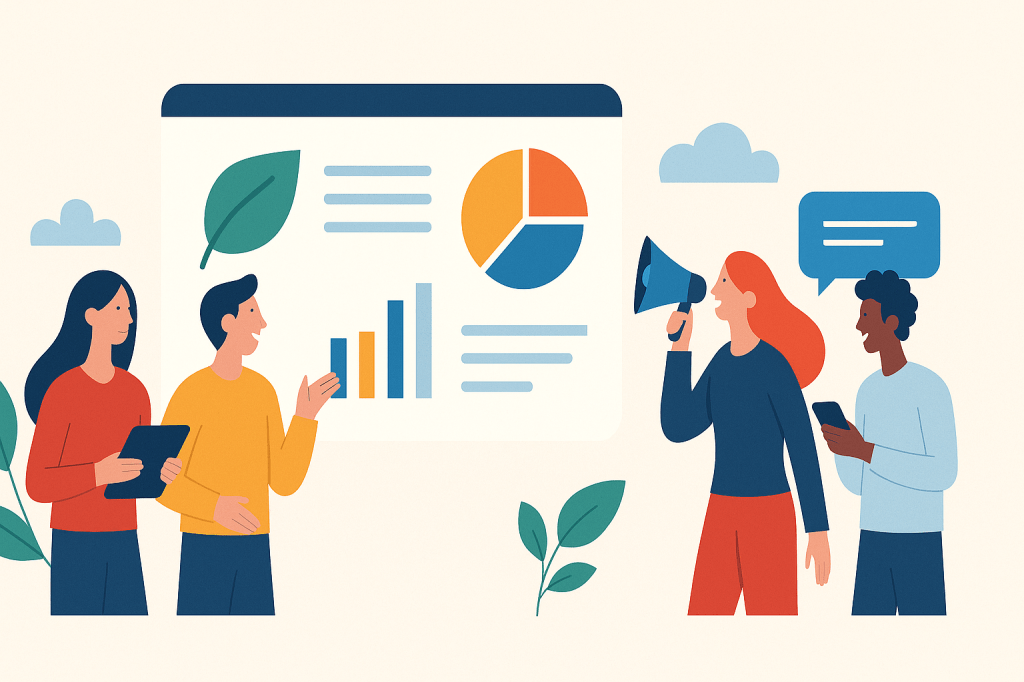 - Organizza un evento interno, un webinar o un momento dedicato per condividere i risultati con dipendenti e stakeholder chiave: è l’occasione per raccontare obiettivi raggiunti, piani di miglioramento e raccogliere feedback; coinvolgere le persone dà senso concreto al report. Presta attenzione al fatto che non tutti leggono un Bilancio con lo stesso interesse: ai dipendenti vanno messi in evidenza i risultati come clima interno, sicurezza e formazione; ai clienti conviene mostrare l’impegno nel rendere i prodotti sostenibili e ridurre l’impatto ambientale; ai partner finanziari è utile fornire dati economici chiave e piani di miglioramento. Quindi seleziona formati e contenuti diversi per la condivisione dei risultati.